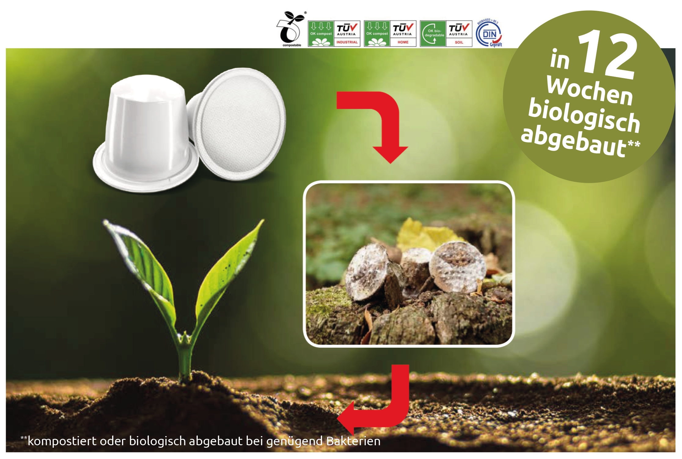 100% kompostierbare Kapseln – kompatibel zu allen Nespresso®** Original Kapselmaschinen und La Natura Lifestyle Smart Maschinen.